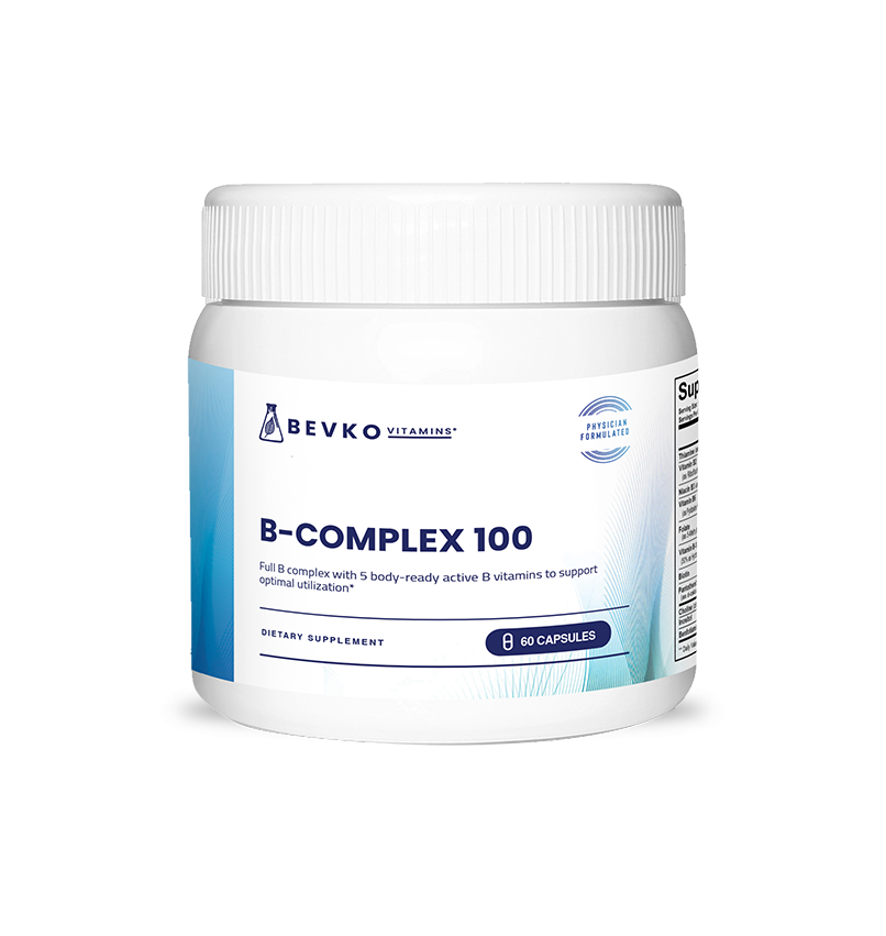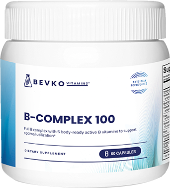 Power your day with Bevko’s B-Complex 100, a comprehensive formula that combines all eight essential B vitamins to optimize energy, metabolism, and overall well-being.* Our B-Complex delivers five pre-activated B-Vitamins that are immediately bioavailable, bypassing metabolic conversion and offering superior absorption .* Designed to support a wide range of health benefits, this blend ensures your body gets the nutrients it needs in bioavailable, body-ready forms.